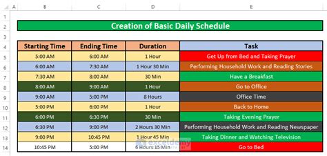 daily time schedule excel