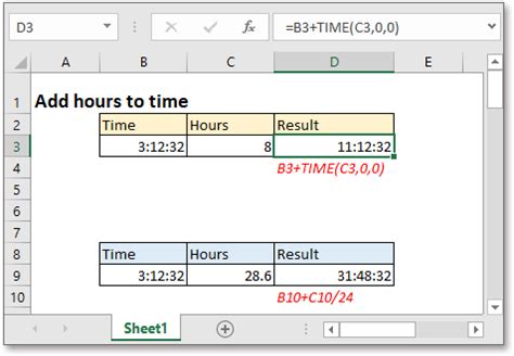 excel time add hours formula