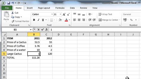 formula setup in excel