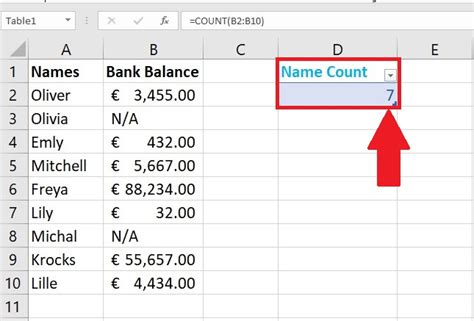 how to auto count names in excel