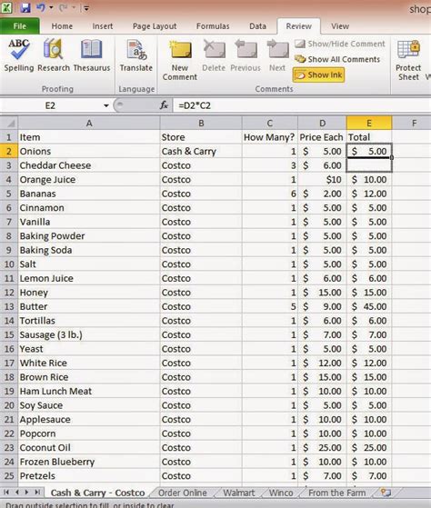 how to create a shopping list in excel