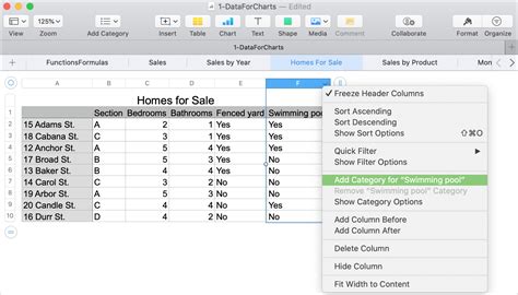 how to create categories in numbers
