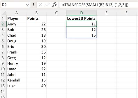 how to find 3rd lowest value in excel
