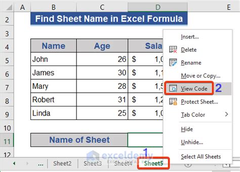how to find sheet name in excel