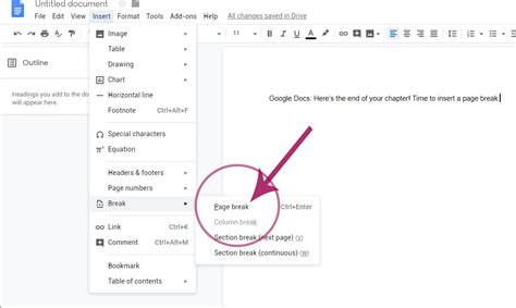 how to insert an empty page in google docs