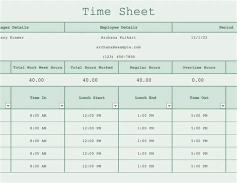 how to make a time sheet in numbers