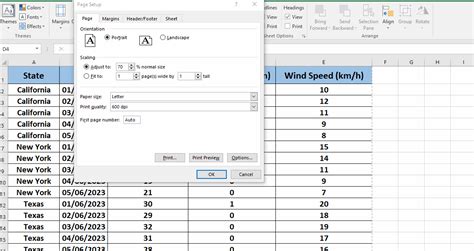 how to make an excel spreadsheet fill the whole page when printing