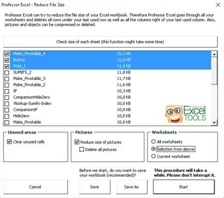 how to minimize size of excel workbook