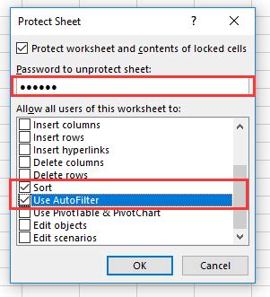 how to protect sheet in excel but allow filtering
