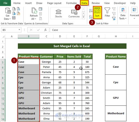 how to sort filter merged cells in excel