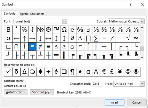 how to type math symbols in word