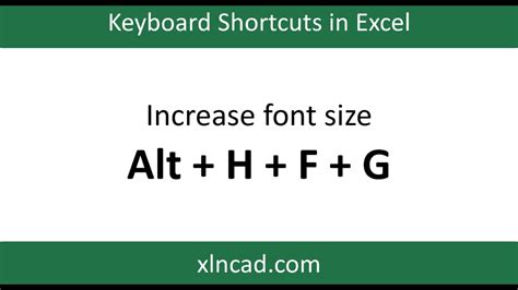 increase font size in excel shortcut key