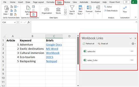 what are workbook links in excel