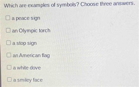 which are examples of symbols choose three answers quizlet