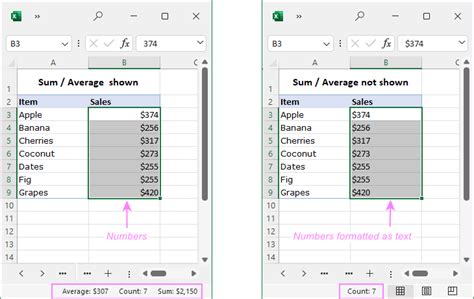 why excel not showing sum